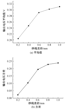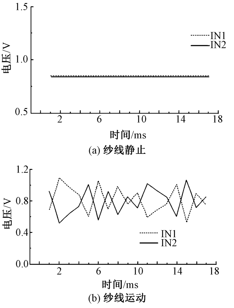 为解决纬编针织纱线张力大小、直径粗细无法动态检测而导致编织异常的问题,开展了基于光电传感的非接触式纱线输送状态检测方法研究,提出双目式光电感应差分测量方法,创新设计了双路光电组件,构造两路纱线动态感应差分信号对,消除共模信号干扰,以适应纱线状态信号弱信噪比的特点。在此基础上,设计了纱线输送状态检测实验,测试积极式送纱过程中纱线在不同张力和不同直径条件下输送时实时电压信号,分析信号平均值、方差和数值频数分布曲线,分析纬编针织纱线输送的动态特性。结果表明:随着纱线张力的增大,差值信号的平均值和方差在逐渐减小,表明纱线波动幅值在逐渐下降,纱线整体波动趋向平稳;同时,改变纱线粗细会使纱线波动幅值逐渐上升,纱线波动差异逐渐增大,当纱线细度增加到一定值时,纱线波动幅值以及纱线波动差异趋于稳定。