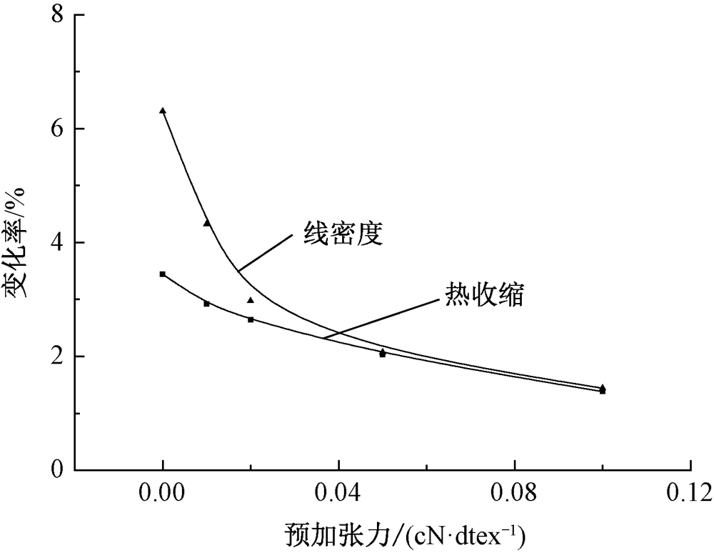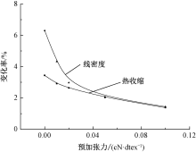 不同热处理张力下HMLS工业丝的热收缩率及线密度变化率"