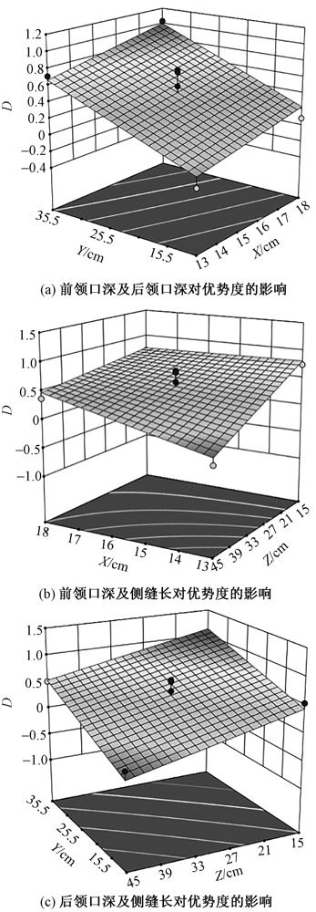 针对不同连体泳装引起用户情绪差异问题,从结构设计出发,基于连体泳装基础结构,选取前领口深、后领口深、侧缝长3个结构设计要素为因素,进行三因素三水平响应面设计,利用CLO3D软件制作各连体泳装的三维虚拟试衣动态视频作为刺激视频,以愉悦度、激活度、优势度为指标测量用户情绪,进行响应面试验并建立回归方程。结果表明:响应面模型与实际情况拟合良好,能较好预测连体泳装的情绪值,影响愉悦度和激活度的因素依次为侧缝长、后领口深、前领口深,影响优势度的因素依次为后领口深、侧缝长、前领口深;前领口深和后领口深的交互作用对情绪的影响较为显著;并得到了以情绪为导向的连体泳装结构设计预测结果。
