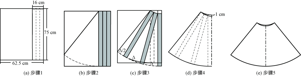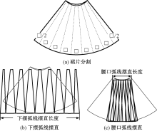 为解决全成形斜裙样衣尺寸与客户要求之间误差过大问题,分析了全成形接片结构、编织工艺及尺寸误差产生原因,将梭织服装纸样技术运用于全成形斜裙纸样绘制及其腰口和下摆弧线长度获取中,运用扇形切展法和任意角度扇环法绘制纸样,以纸样剪移法和扇环弧长计算法获取弧线长度,并对2种纸样、2种弧长进行比较分析,演绎出更适用于全成形斜裙腰口和下摆弧线长度的直接理论计算方法。研究表明:扇形切展法与纸样剪移法的组合可用于获取斜裙腰口和下摆弧线的准确长度,而任意角度扇环法与扇环弧长计算法的组合,更可直接理论计算出斜裙腰口和下摆弧线长度,无需复杂而繁琐的纸样绘制、剪切和转移,缩短了试样时间,提高了试样效率。