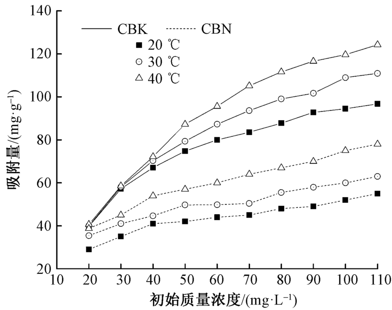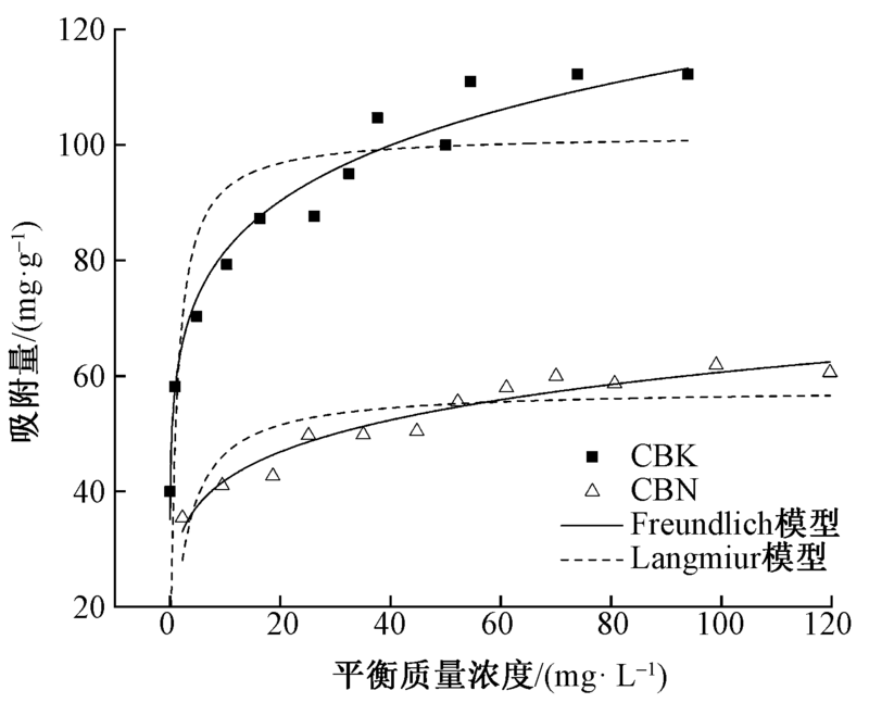 针对目前酸性媒染染料废水中的六价铬Cr(VI)对水体环境污染严重的问题,以柳絮纤维为原料,通过限氧裂解法制备了KOH活化生物质炭(CBK)、NaOH活化生物质炭(CBN),采用吸附批实验法研究模拟染料废液pH值、吸附剂投放量、温度效应等对柳絮纤维生物质炭吸附处理Cr(VI)的影响,利用动力学和热力学相关模型对吸附过程进行拟合,探究柳絮纤维生物质炭对Cr(VI)的吸附机制。结果表明:CBK较CBN比表面积显著增大,表面吸附位点增多;在模拟废液pH值为2时,CBK、CBN对Cr(VI)的理论最大吸附量分别为82.68、47.16 mg/g,且吸附过程符合Freundlich热力学模型和准二级动力学模型,吸附过程主要为多分子层吸附,同时还伴随着化学吸附,该吸附反应是自发进行且为吸热反应,温度升高可显著提高柳絮纤维生物质炭对Cr(VI)的吸附量。