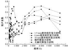 为增加废弃玉米秸秆的回收利用率,分别以长度为1.5、6和10 mm的废弃秸秆颗粒、棉纤维和大麻纤维为增强材料,聚己内酯为基体材料,通过热压成型工艺制备厚度为1.5 cm的吸声复合材料。采用声阻抗传递函数法对复合材料的吸声性能进行测试与对比,并分析其吸声机制。结果表明:1.5 mm长的废弃秸秆所制备复合材料的吸声性能最好,最大吸声系数达到0.71,平均吸声系数为0.50,降噪系数达到了0.51;废弃秸秆纤维素大分子主链上的氧六环结构为声波反复反射、折射提供了基础,较高的线性使得氢键等单键能够自由旋转,增加了声波能量的消耗,且废弃玉米秸秆的结晶度低使得声能易于沿着分子链传播,从而将声能转化为分子链段振动耗散。