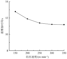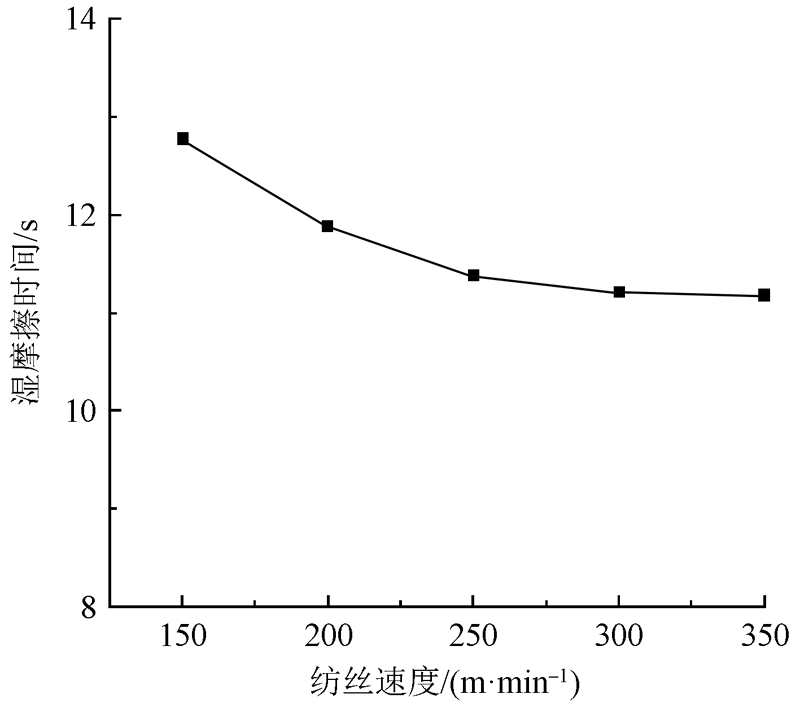 Lyocell纤维湿摩擦时间随纺丝速度的变化"