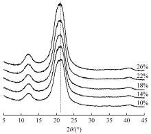 不同NMMO质量分数下Lyocell纤维的XRD衍射图谱"
