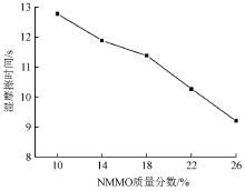 Lyocell纤维湿摩擦时间随NMMO 质量分数的变化"