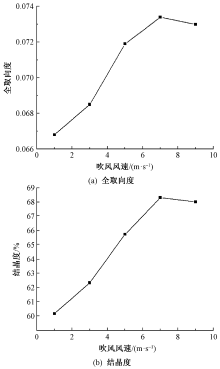 不同吹风风速下Lyocell纤维的全取向度和结晶度"