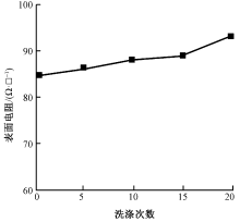 为拓展二维碳化钛材料在棉针织物中的应用,制备具有一定耐水洗性能的导电棉针织物,首先利用 LiF/HCl 混合溶液刻蚀前驱体钛碳化铝获得二维碳化钛导电材料(Ti3C2Tx),再对棉针织物进行阳离子化改性,使 Ti3C2Tx 通过静电作用附着到阳离子化的棉针织物表面,得到导电棉针织物材料。借助X 射线衍射仪、X 射线光电子能谱仪、扫描电子显微镜、透射电子显微镜等手段对棉针织物在阳离子化改性前后以及负载 Ti3C2Tx前后进行形貌表征和元素分析。通过 RTS-9 型四探针测试导电棉针织物的表面电阻,对棉针织物阳离子化改性工艺及 Ti3C2Tx 在阳离子化棉针织物表面的负载条件进行了优化。得到棉针织物阳离子化改性的最佳工艺:阳离子改性剂用量为 10%(o.w.f),氢氧化钠质量浓度为 10 g/L,获得Ti3C2Tx 在阳离子化棉针织物表面的最佳负载条件(超声波处理 60 min)。在优化条件下,负载 Ti3C2Tx 的阳离子化改性棉针织物表面电阻可低至 84.5 Ω/□,经20 次水洗后,导电棉针织物的表面电阻由 84.5 Ω/□上升至 95.6 Ω/□,仍在 100 Ω/□ 以下,可满足导电要求。