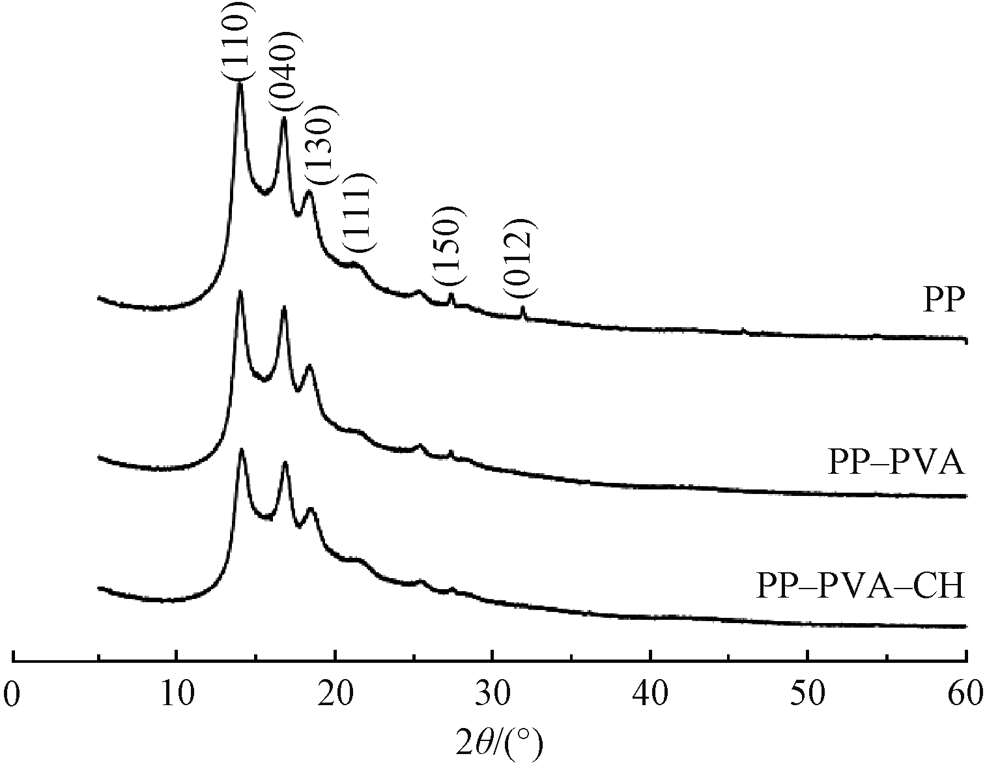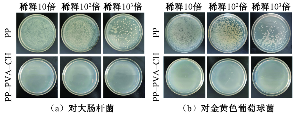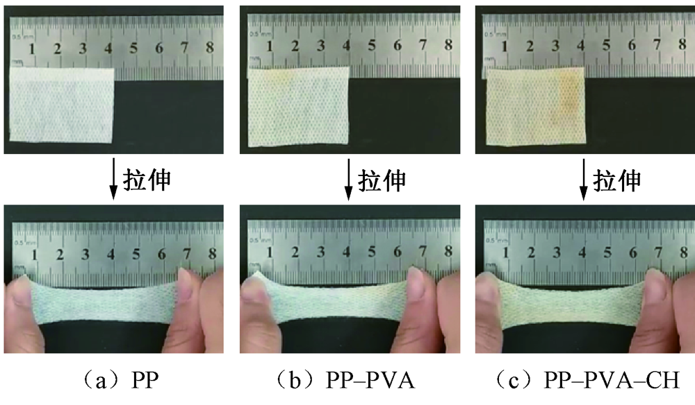 为有效控制人体发生严重创伤时出血,减少伤口感染概率,研制了具有抗菌止血功能的弹性绷带。以聚丙烯(PP)纺粘弹性非织造材料为基材,对其进行聚乙烯醇(PVA)亲水改性和壳聚糖(CH)接枝改性处理,得到具有抗菌和止血双重功能的PP-PVA-CH弹性非织造材料,并对改性前后试样的性能进行了对比分析。结果表明:PVA和CH成功负载在非织造材料表面,且改性对材料主体结晶结构没有影响;PP-PVA-CH的最大拉伸断裂强力和断裂伸长率分别是PP的1.40和1.24倍,PP-PVA-CH的弹性回复率为88%;改性后试样的接触角有效降低,去离子水和人工合成血液的扩散面积分别是PP的13.0和12.9倍;PP-PVA-CH对大肠杆菌和金黄色葡萄球菌的抑菌率均大于99.0%。