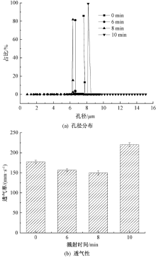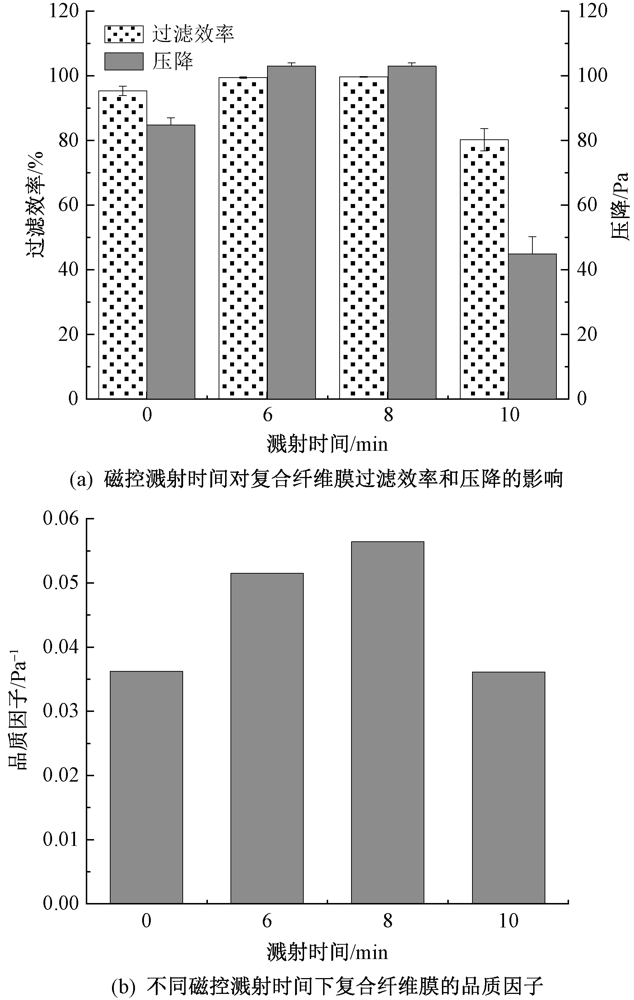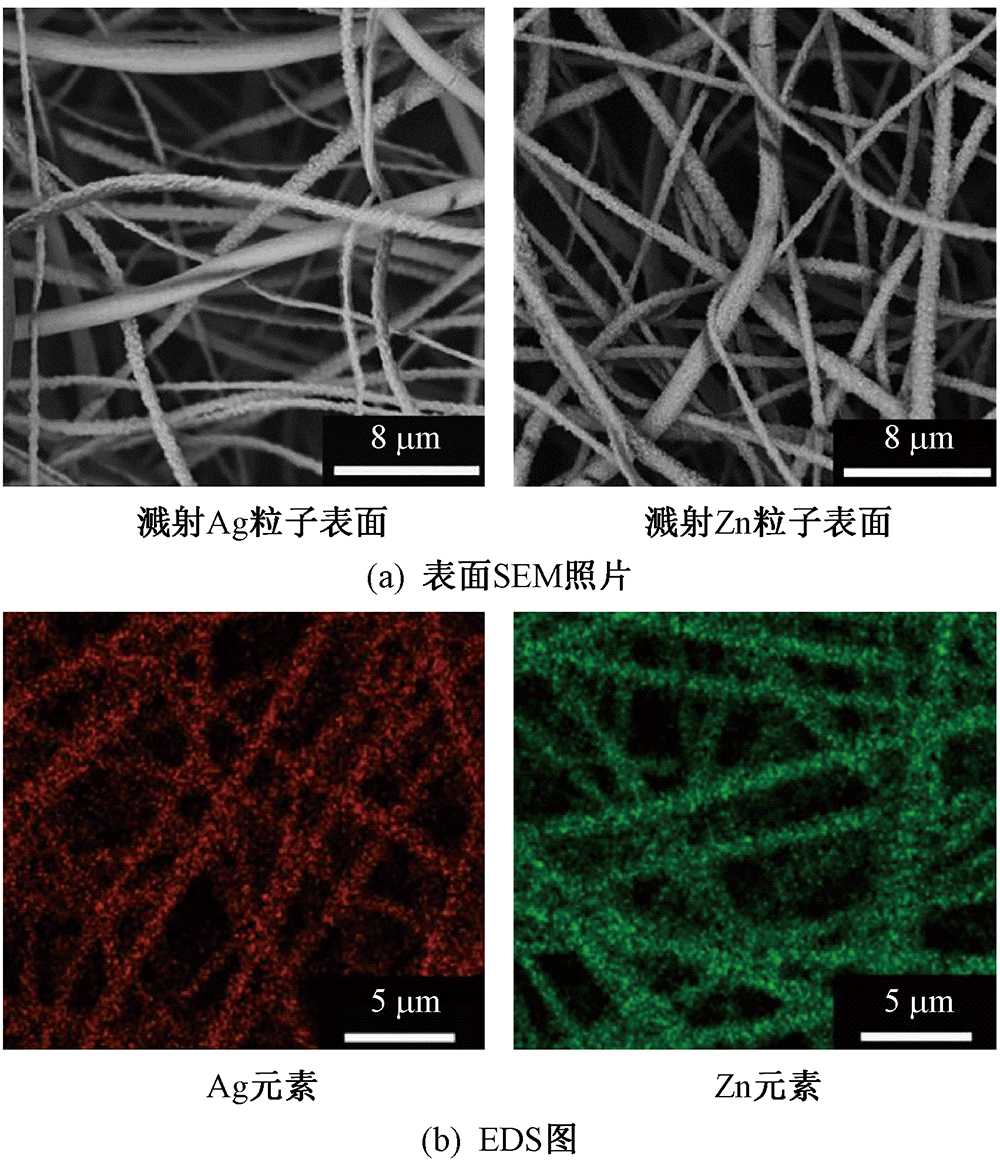 为制备得到兼具抗菌和紫外线防护性能的空气过滤材料,以聚苯乙烯(PS)和聚偏氟乙烯(PVDF)为原料,采用静电纺丝技术制备PS/PVDF纳米纤维膜,并在其正反两面分别磁控溅射银(Ag)和锌(Zn)纳米涂层得到PS/PVDF/Ag/Zn复合纤维膜,并对其微观形貌、元素组成、孔径分布、透气性、过滤性能、紫外线防护性能以及抗菌性能进行研究。结果表明:当溅射功率为60 W,溅射总时间为8 min时,所制得的复合纤维膜对300 nm NaCl气溶胶颗粒的过滤效率达到99.7%,压降为103 Pa,品质因子为0.056 Pa-1;此外,该复合纤维膜的紫外线防护系数可达到702.5,对大肠杆菌和金黄色葡萄球菌的抑菌带宽度分别为3.5和6.2 mm,表现出优异的紫外线防护性能和良好的抗菌性能。