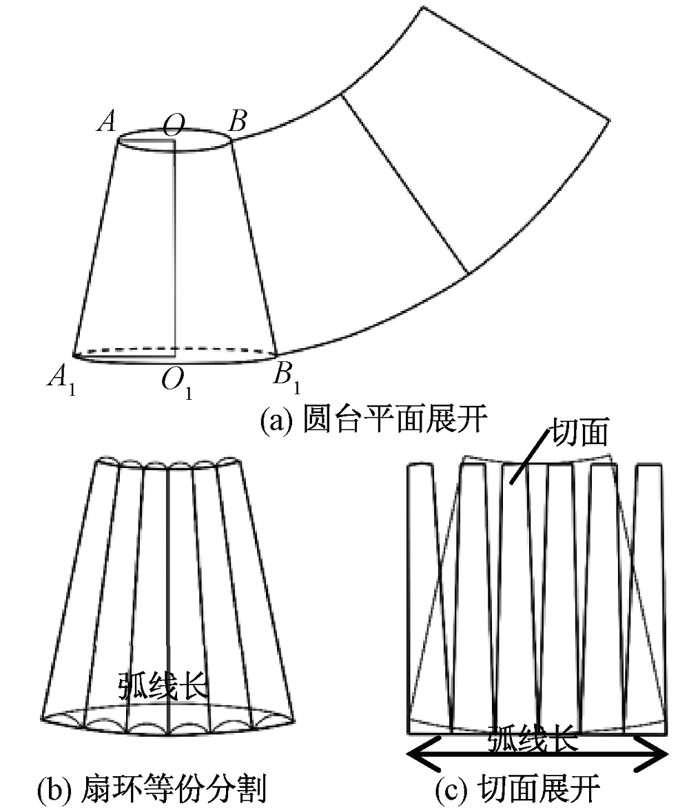 Results From the perspective of appearance and contour modeling, knitted three-dimensional products can be divided into cylinder structure, cubic structure, spherical structure and special-shaped structure, which were utilized to produce clothing, bags, lighting, seats and other categories of knitted products. The truncated cone obtained a full forming paper pattern by cutting and expanding, and a trigonometric function relationship was formed between the number of knitting rows, the number of narrowing and widening needles and the inclination angle, and hence the trigonometric transformation method was proposed. The side shape of the truncated cone was achieved by entering the number of knitting rows and the number of narrowing and widening needles (Fig.6). The frustum of a pyramid was converted into a two-dimensional paper pattern after flattening along the diagonal line of the bottom face, and the upper and lower cover surfaces were converted into parallelograms corresponding to the sides, so as to propose a parallelogram transformation method to simplify the connection process between the sides and the upper and lower bottom surfaces. Similarly, there was a trigonometric relationship between the number of knitting rows, the number of hanging needles and the tilt angle, and the three-dimensional shape was achieved with the help of parallelogram transformation method and triangular transformation method (Fig.8). The sphere was cut and stretched to obtain the full forming paper pattern, and the arc profile was converted into several successively connected moment blocks, so as to propose the inverse fitting method. The edge moment block was adopted to create the arc shape (Fig.10). The example of the arc lamp shade was knitted with obvious arc contour of the lamp shade using the reverse fitting method, and the size parameters met the design requirements (Fig.14).