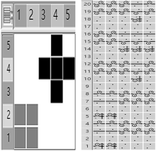 Method The structure forming principle of weft-knitted two-side transfer fabric was analyzed, and the process design model of weft-knitted two-side transfer fabrics was established. The mathematical relationship between transfer pattern and process structure was described by using mathematical matrix and multi-dimensional process decomposition method. The multi-dimensional technological decomposition of the pattern effect was achieved on a graph, and the three-dimensional mathematical matrix was used to represent the artistic information for pattern grid and knitting pattern grid to assist the structural decomposition and the knit process. The pattern design process was simplified by means of algorithm and primitive mapping.