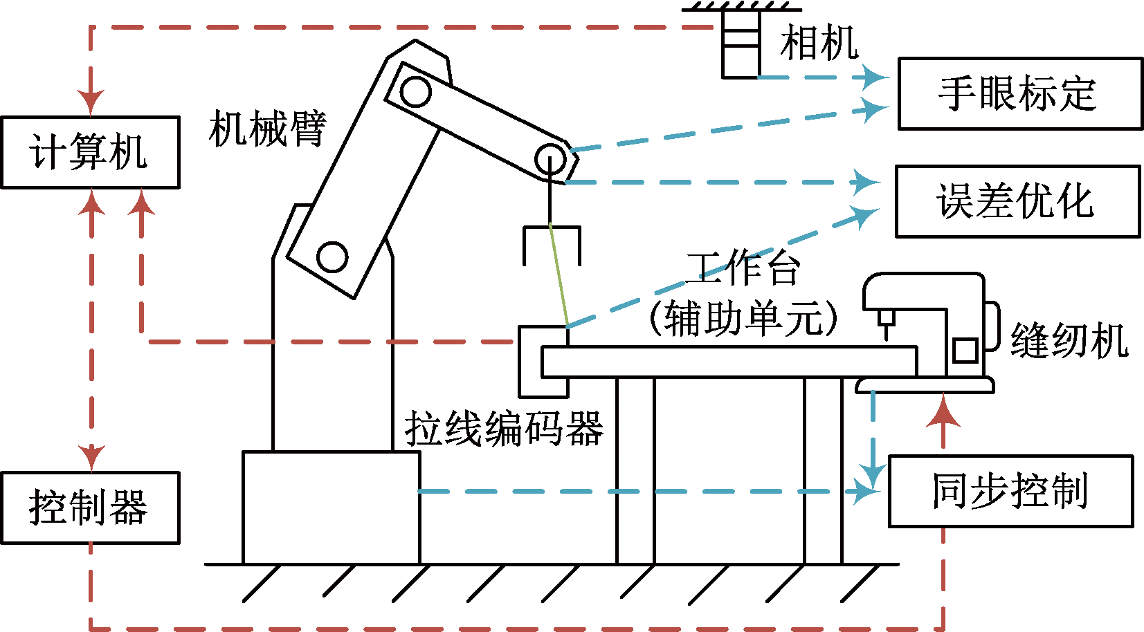 针对面料缝合过程中人力需求高、自动化程度低、效率低等问题,结合机器视觉、工业机械臂和缝机等,设计并研发了从上料到缝合到下料的智能缝制成套装备。首先,对基于拉线编码器的机械臂绝对定位误差优化补偿技术、基于Canny算子的面料轮廓识别与关键点提取技术、基于比例积分微分(PID)闭环控制算法的机械臂与缝纫机速度的同步控制技术进行了研究。然后,针对具体的应用需求研发了双层面料智能缝制设备,并对其进行了简单介绍。案例分析结果表明,通过几种技术的结合,提高了缝制成套装备机械臂的绝对定位精度、面料轮廓识别提取能力、缝制质量的一致性,减少了人工需求,助力服装缝制行业的转型升级。