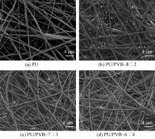 为减少人类生产活动排放的PM0.3悬浮颗粒对生态环境和公众健康产生的危害,以聚氨酯/聚乙烯醇缩丁醛(PU/PVB)为原料,采用静电纺丝方法制备了一种新型复合纳米纤维膜。通过改变PVB在复合纳米纤维膜中的质量占比来调控复合纳米纤维膜的形貌结构、化学结构、力学性能、热学性能、透气性能和过滤性能。结果表明:PVB的加入有效减小了PU纳米纤维的平均直径;当PU和PVB的质量比为8∶2时,复合纳米纤维膜的平均直径为385 nm,相比于PU纳米纤维膜减少51%;断裂应力达到16 MPa,相比于PU纳米纤维膜增加45%,断裂应变为148%,具有优异力学性能;该复合纳米纤维膜具有良好的热稳定性,起始分解温度为289.37 ℃,其对PM0.3的过滤效率为98.851%,过滤压降为181.7 Pa,品质因子为0.024 6 Pa-1,是一种理想的PM0.3悬浮颗粒过滤介质。