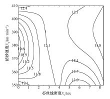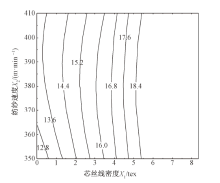 为获得更高强力的喷气涡流纺纱线,通过引入涤纶长丝制备喷气涡流纺粘胶/涤纶包芯纱。采用统计分析等方法研究了芯丝线密度、纺纱速度对喷气涡流纺粘胶/涤纶包芯纱强伸性、条干不匀和毛羽的影响规律,同时对比分析了不同纺纱条件下包芯纱的结构外观。研究结果表明:芯丝线密度、纺纱速度对喷气涡流纺粘胶/涤纶包芯纱各性能响应值有不同程度的影响;纺纱速度过高或过低均不利于包芯纱成纱的强伸性提高和条干均匀性改善,纺纱速度的增加会使毛羽H值增大;在一定范围内,增加芯丝线密度有利于包芯纱强伸性的提高,随芯丝线密度的增加,包芯纱毛羽H值减小;此外,选用较大的芯丝线密度和较高的纺纱速度时,纺制的包芯纱芯丝外露现象越明显。