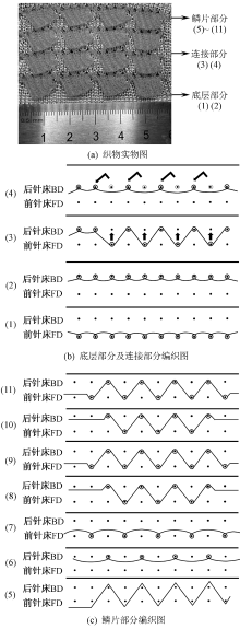 为研究仿生鳞片针织结构自供能传感织物结构对其性能的影响,利用针织成形工艺将锦纶纱线、聚四氟乙烯纱线及镀银锦纶纱线设计并制备三维仿生鳞片针织结构,形成基于仿生鳞片针织结构的自供能传感织物,并对其性能进行研究。结果表明:该仿生鳞片针织结构自供能传感织物可大规模织造,其电学输出性能受鳞片与间隔部分接触面积的影响,可通过调节纵向间隔来调控其电学性能;织物的各向异性与鳞片的纵向间隔及排列方式有关,小纵向间隔、叠瓦状排列方式下的应变强化特征明显,可提供较强的支撑性;该自供能传感织物保持织物内在舒适性的同时,兼具智能性与功能性,满足柔性与防护性需求。