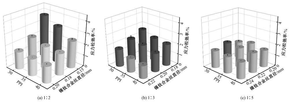 不同编织工艺参数的食管覆膜支架的应力松弛率"
