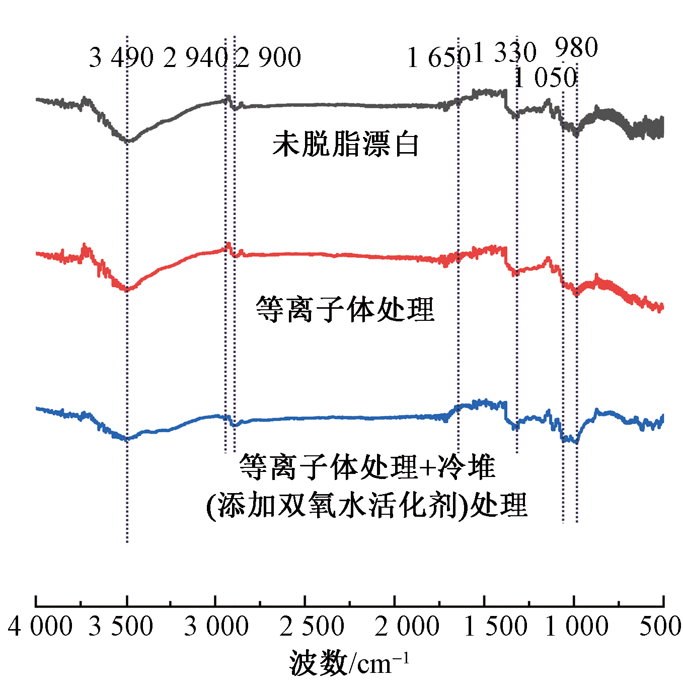 不同处理工艺下的全棉水刺非织造布的红外光谱图"