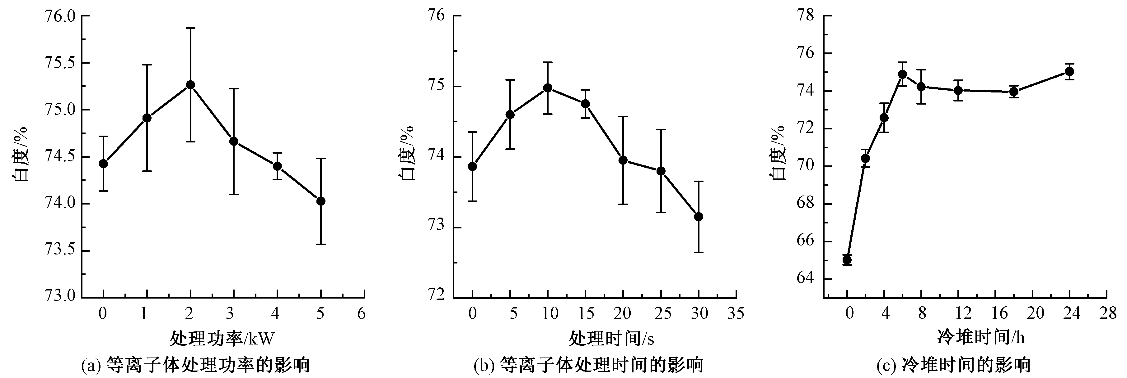 等离子体处理功率与冷堆时间对白度影响的曲面图"