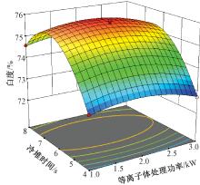 等离子体处理功率和处理时间对白度影响的曲面图"