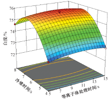等离子体处理时间与冷堆时间对白度影响的曲面图"