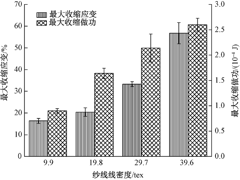针对纤维基驱动器结构稳定性较低、制备工艺复杂、难以实现产业化应用等问题,采用亲水性粘胶长丝与低熔点涤纶长丝,通过并线、倍捻、热定形的方法制备纱线基驱动器,利用在外界湿刺激条件下2种材料的非对称响应实现驱动功能。对该纱线基驱动器结构进行测试与表征,分析湿刺激下粘胶长丝与涤纶长丝协同响应驱动性能和循环回复效应的影响因素。结果表明:该纱线基驱动器表面为粘胶与涤纶长丝束呈多层级交替排布的类骨骼肌结构;在一定范围内,驱动器的驱动性能随着纱线捻度、线密度与粘胶长丝含量的增加而增大,单次循环内驱动器最大收缩应变可达83.15%,连续30次循环内最大收缩应变回复率可达90%以上,展现出优异的结构稳定性以及强大灵敏的响应驱动性和循环回复效应,在柔性机械臂、智能纺织品等开发领域具有广阔的应用前景。