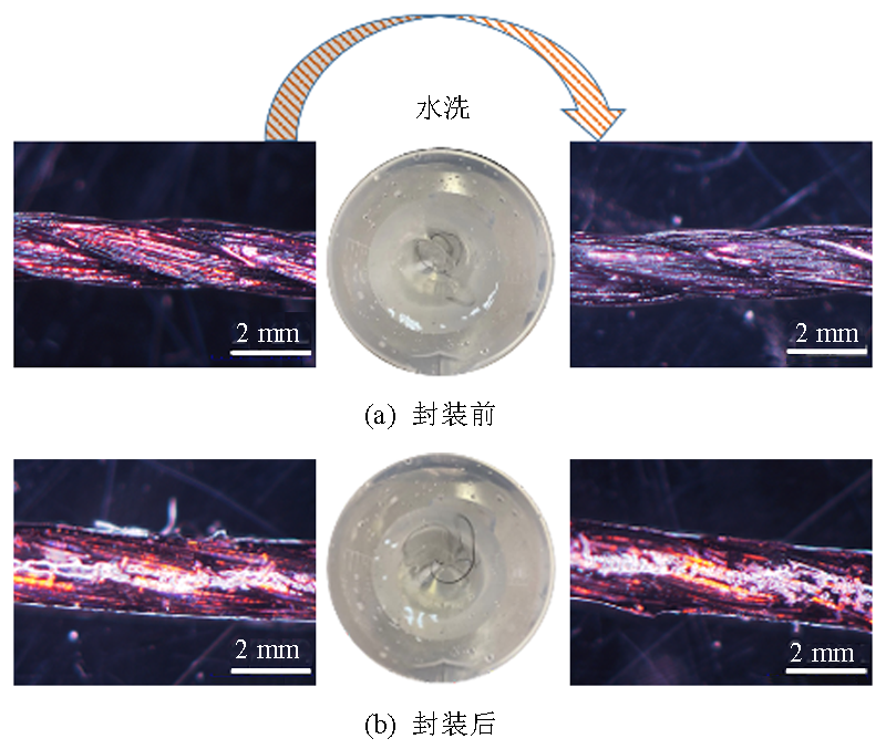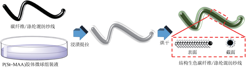 针对碳纤维难着色的问题,提出利用结构生色实现碳纤维/涤纶混纺纱线的着色。以聚(苯乙烯-甲基丙烯酸)胶体微球为结构基元,利用浸渍提拉法在碳纤维/涤纶混纺纱线上构筑光子晶体生色结构。分析组装液质量分数和自组装温度对结构色的影响,探究胶体微球在纱线表面组装成光子晶体的过程,利用聚二甲基硅氧烷(PDMS) 封装技术提升结构生色纱线的色彩耐久性。结果表明:当组装液质量分数为70%、自组装温度为40 ℃时,可以在纱线表面构筑得到结构色明亮的光子晶体;胶体微球在纱线表面的组装过程归纳为预备阶段、堆砌聚集和完备阶段;经PDMS封装后的结构生色纱线经历水洗摩擦后依旧保持原有的色彩鲜艳度。该研究可为实现彩色碳纤维制品的现代化生产和应用提供新的策略。