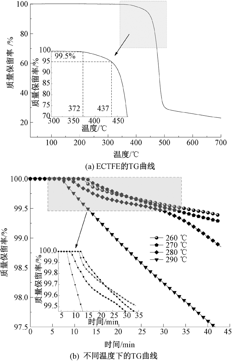为制备耐高温熔喷过滤材料以应对高温工业粉尘的污染问题,研究了聚乙烯三氟氯乙烯(ECTFE)的热性能、动态热机械性能、流变性能以及形貌,并选取合适的工艺参数成功制备得到ECTFE熔喷非织造材料,对ECTFE熔喷非织造材料的结构与高温处理下的过滤性能进行表征,结果表明:ECTFE熔喷非织造材料纤维网中的纤维呈现随机交错、缠绕排列,其纤维直径分布在4~12 μm, 平均直径约为7.12 μm,其孔径主要分布在45~55 μm;当将ECTFE熔喷非织造材料从150 ℃预加热到210 ℃并用于过滤后,其对PM10的过滤效率均保持在99.96%,而对PM2.5和PM5的过滤效率随着ECTFE熔喷非织造材料预加热温度的升高逐渐降低,但仍能够保持在55.16%以上。