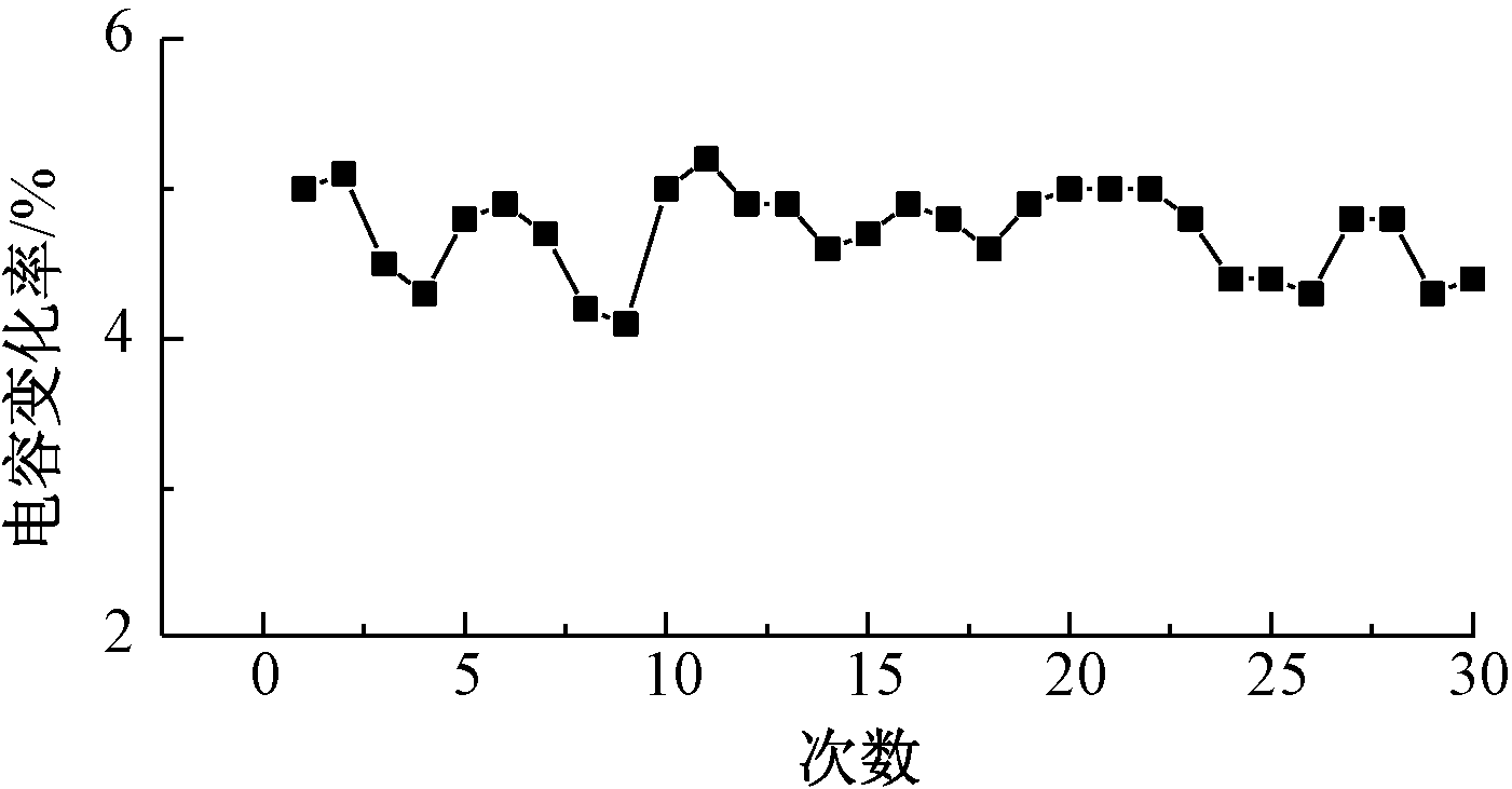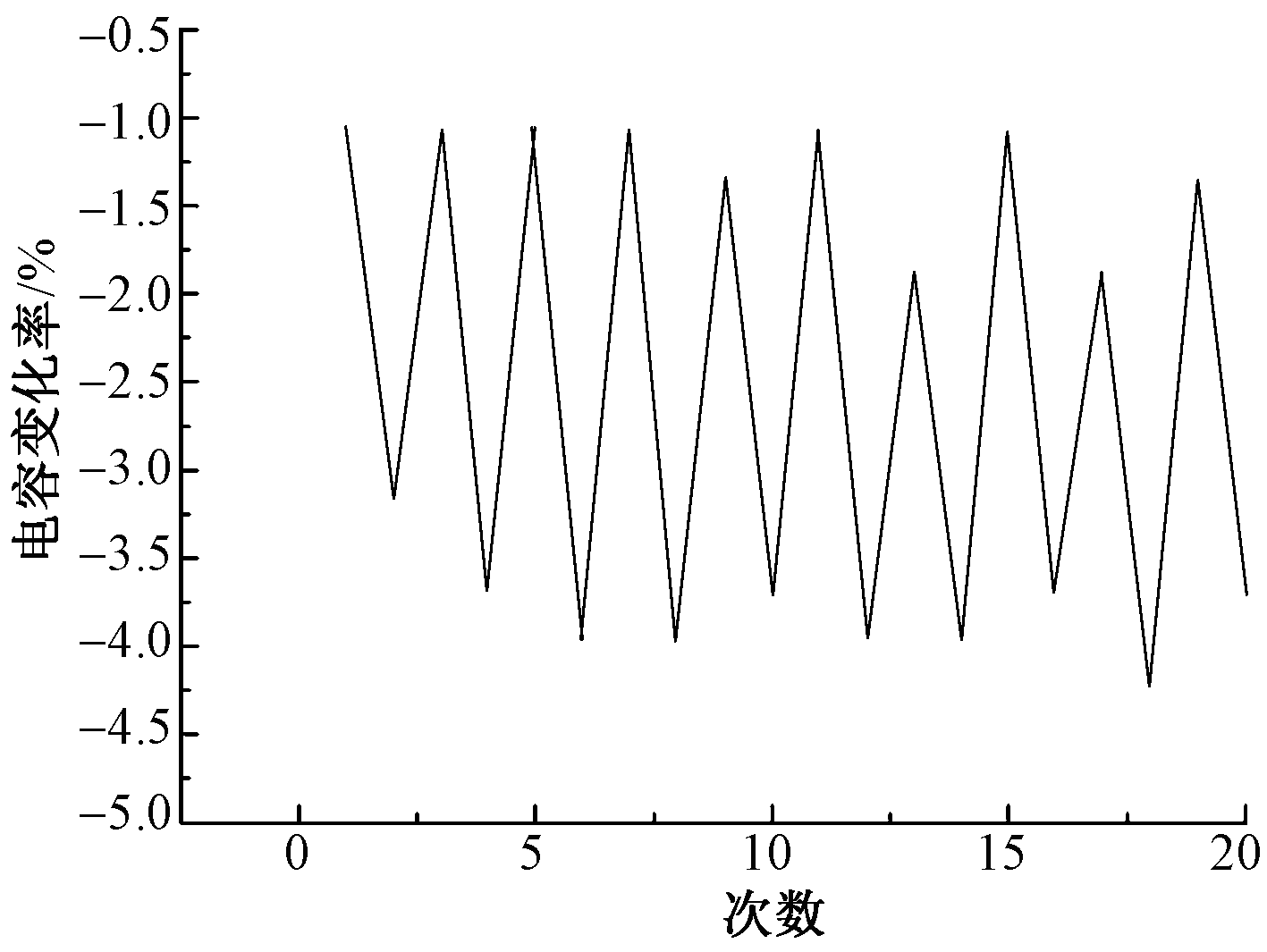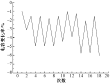 金属镊子周期性靠近传感器时电容-次数变化曲线"