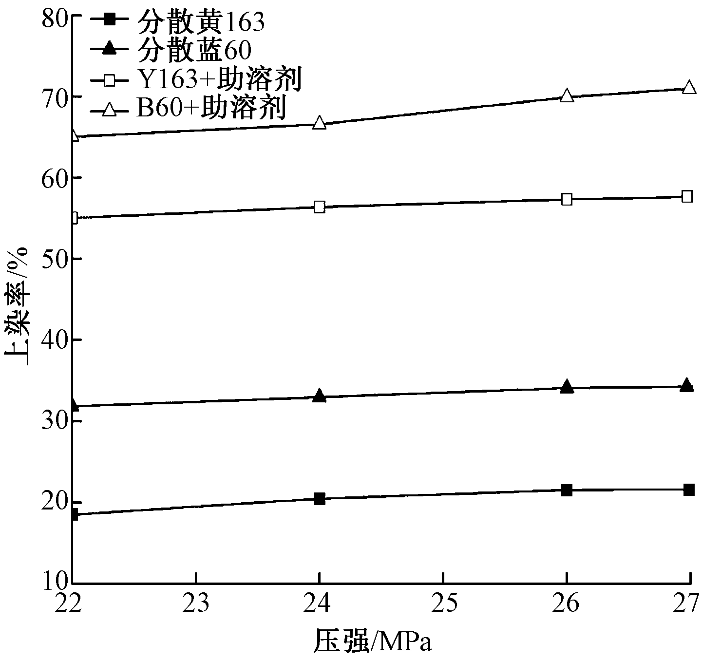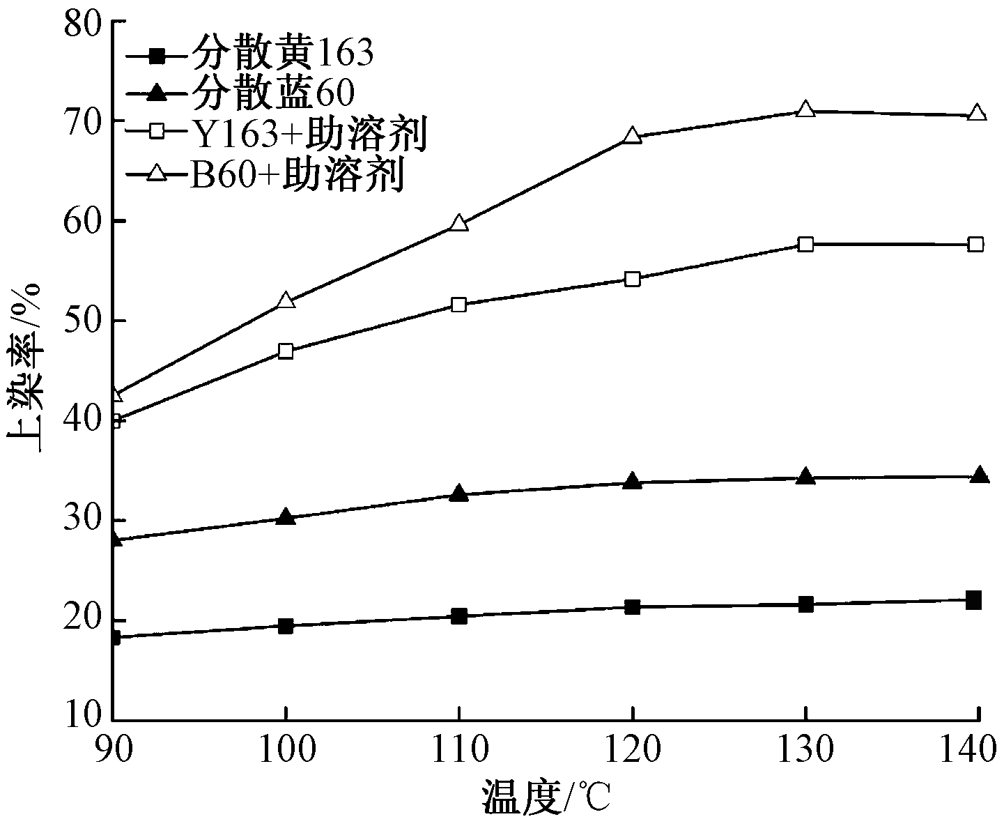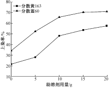 为提高部分分散染料在超临界二氧化碳流体(ScCO2)中上染率,补全ScCO2分散染料染色色谱,以5-(二甲氨基)-2-甲基-5-氧戊酸甲酯作为分散染料ScCO2染色助溶剂,通过实验探究了染料与助溶剂质量比、染色温度、染色压力对分散染料上染率的影响,并对染色后涤纶纱线的力学性能、耐摩擦色牢度、耐日晒色牢度以及耐皂洗色牢度进行表征。结果表明:纱线得色深度明显提高,且未对纱线色相、饱和度产生明显影响;分散黄163、分散蓝60染料滤饼上染率分别为21.61%、34.25%;加入助溶剂后,分散黄163、分散蓝60的ScCO2染色上染率分别可达57.62%、 70.97%;染色纱线得色深度显著提高,染色后纱线的K/S值分别由4.5、5.9提升至12.0、12.2;最佳染色工艺为:染料与助溶剂质量比1∶20,染色温度130 ℃,染色压力27 MPa;加入助溶剂后染色纱线的力学性能、色牢度符合生产需求。