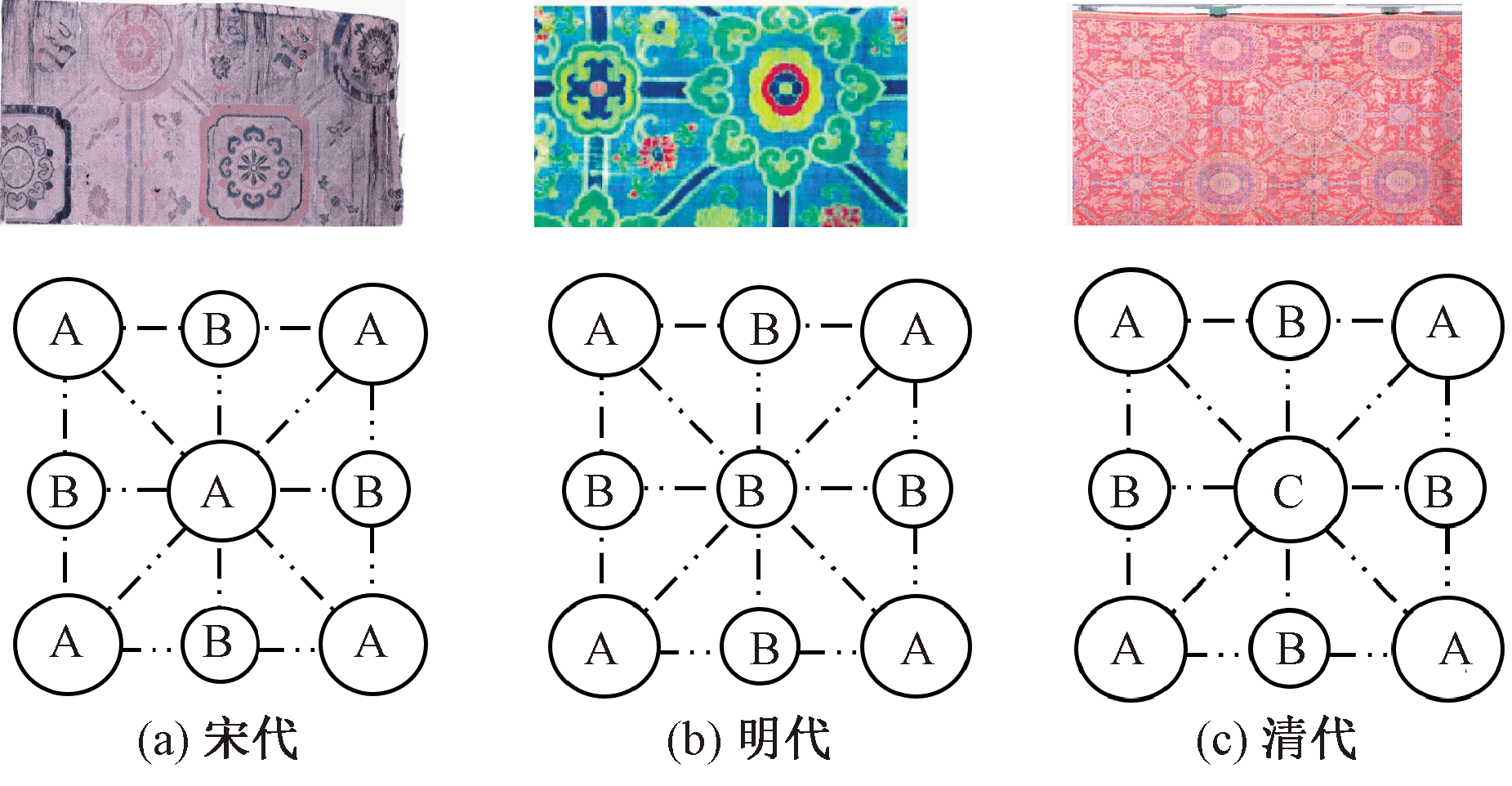 铜钱纹“卍”字纹等几何纹样 简单的写生花卉纹、几何纹样 较为复杂的写生花卉纹、动物、几何纹样