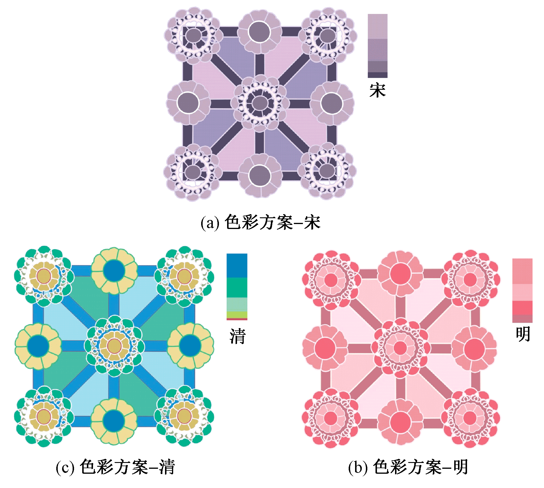 Objective Traditional patterns possess rich cultural connotations and unique aesthetic characteristics. This study aims to reinterpret and recreate the morphological composition of traditional patterns, injecting them with a sense of contemporaneity and innovation. By doing so, it seeks to infuse contemporary designs with distinctive artistic charm and provide consumers with diverse choices and cultural experiences. Currently, researchers primarily focus on the cultural connotations and formal composition of patterns, resorting to manual drawing for their reinterpretation, while lacking applications for rapid digital generation. To enhance the efficiency of innovative design for traditional patterns, a parametric deconstruction and regeneration method is proposed, enabling the rapid generation of pattern forms and color variations.