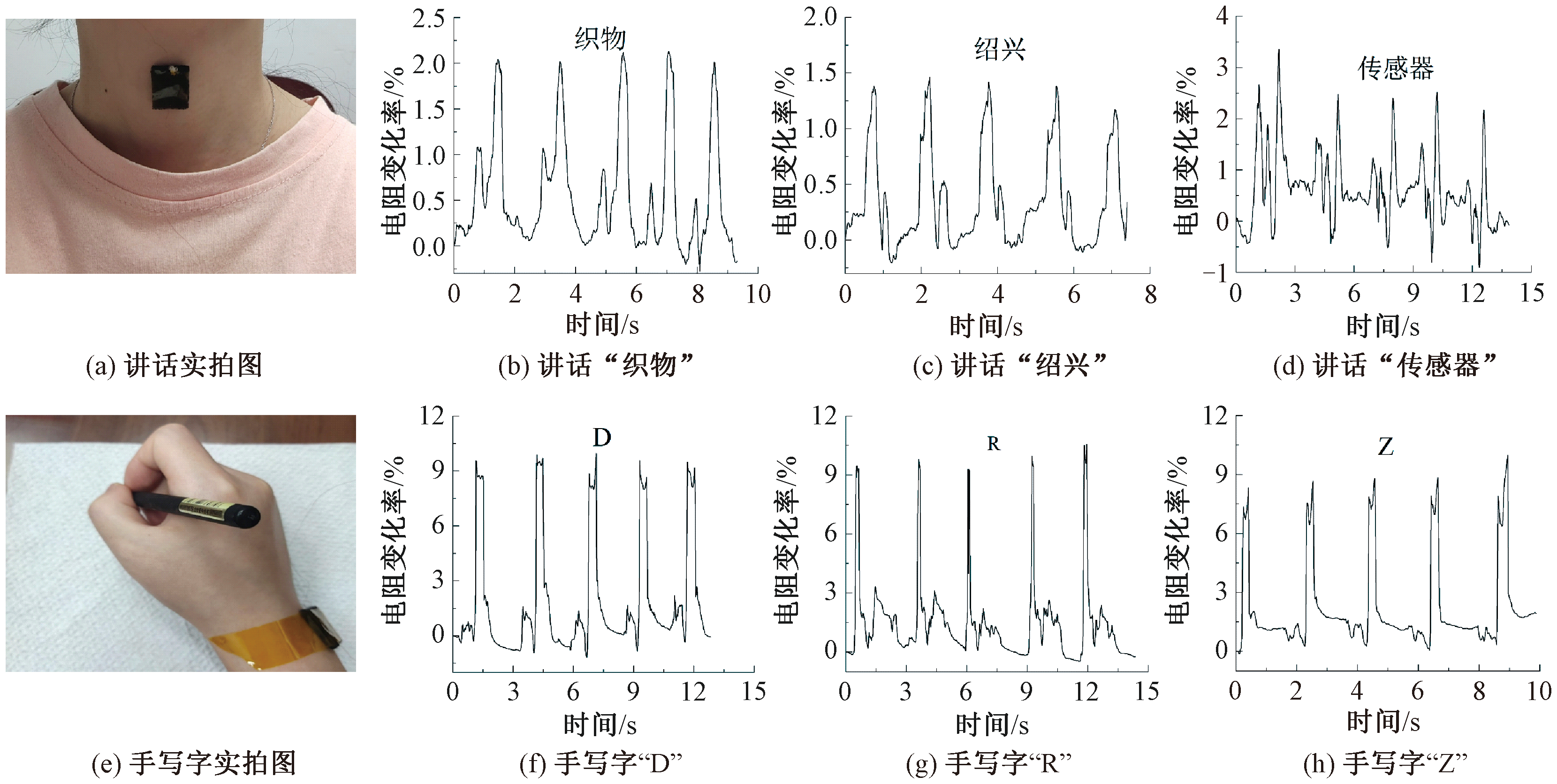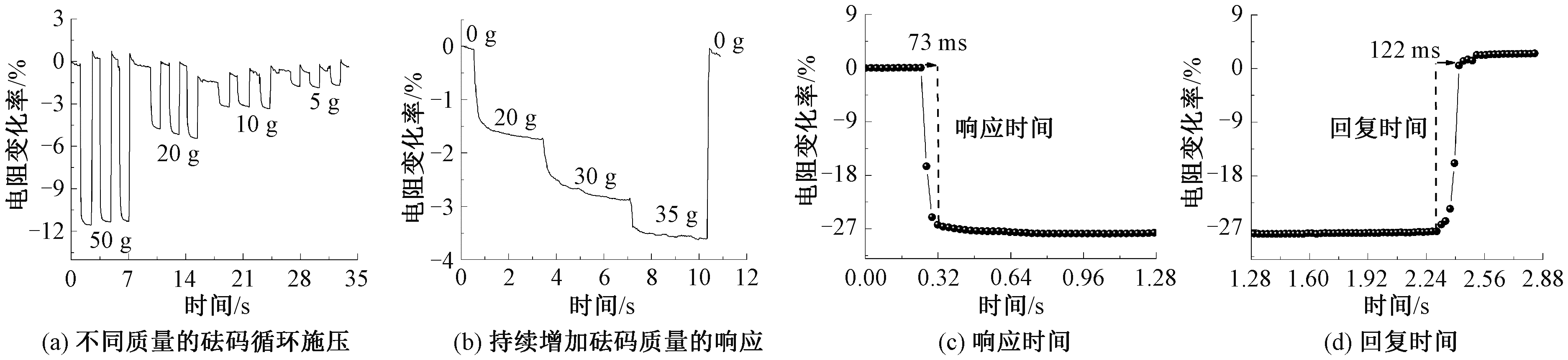 摘要: 为改善柔性可穿戴压力传感器在使用时灵敏度低、耐久性差、柔韧舒适性不足等问题,提出了一种基于预针刺-热加固技术制备的三维聚乙烯/聚丙烯热熔纤维与涤纶非织造布为基材的高灵敏、较耐磨的压阻传感器。使用扫描电子显微镜、数显推拉力计和数字万用表等仪器表征了碳纳米管修饰三维纤维网非织造布前后的微观形貌、力电学性能和传感性能。结果表明:柔性纺织传感器在低压力范围(0~0.17 kPa)内的灵敏度高达0.91 kPa-1;能在73 ms内实现对压力的快速响应;具有0~166 kPa较宽的感测范围,在超过2 000次施压循环后仍然保持较稳定的相对电阻变化,表现出较优异的耐久性。此外,该传感器可应用于信息加密,监测人体微弱活动(眨眼、吞咽)和大形变运动(关节活动等)。在健康监测、人机交互、语音识别和手写字识别等领域具有广阔的应用前景。