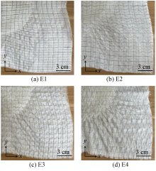 为开发既具有电热性能又满足对三维表面具有一定适应性的电加热织物,采用定制纤维铺放(TFP)工艺设计制备直线形、正弦波形、锯齿形和尖角形4种镍铬合金丝排布方式的电加热织物,研究电加热织物的电热性能和半球成型性能。结果表明:10 V直流电压下通电30 s,4种电加热织物表面最高平衡温度分别达到159.5、92.8、66.7和31.5 ℃,温度分布均匀;反作用力与镍铬合金丝排布方式密切相关;半球成型最终状态下,直线形电加热织物成型反作用力最小,表面褶皱和细观缺陷最少,且最大面内剪切角为32.26°;与未引入镍铬合金丝玻璃纤维基底织物相近,即直线形电加热织物半球成型性优于正弦波形、锯齿形和尖角形电加热织物。