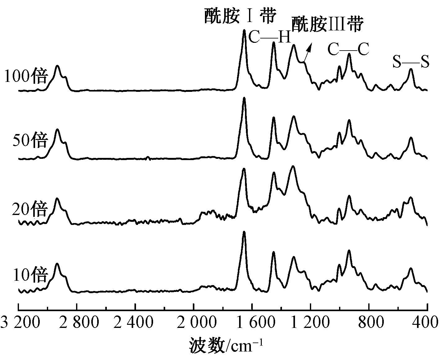 CHURCH J S, CORINO G L, WOODHEAD A L. The analysis of Merino wool cuticle and cortical cells by Fourier transform Raman spectroscopy[J]. Biopolymers, 1997, 42(1): 7-17.