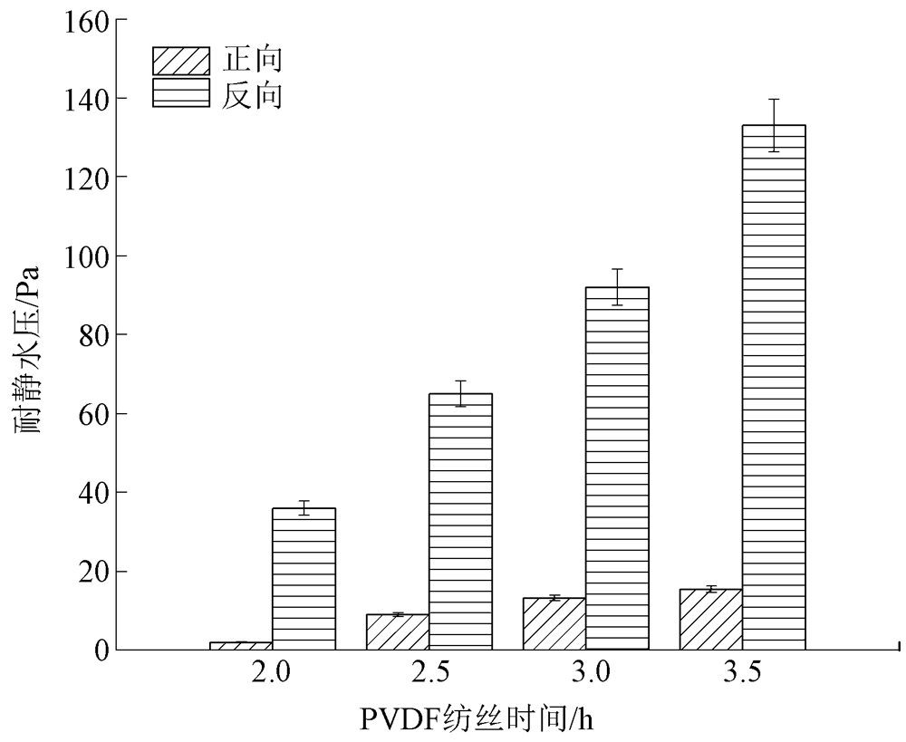 针对当前导湿材料的导湿性能差、穿着不舒适等问题,分别以聚偏氟乙烯(PVDF)和聚丙烯腈(PAN)/SiO2为原料,通过静电纺丝制备疏水层和具有取向结构的亲水层,并探究 PVDF 层厚度对复合纤维膜的孔径、单向导湿指数、透湿透气性能和力学性能的影响。结果表明:随着 PVDF 层纺丝时间的增加,双层纤维膜的孔径逐渐减小,当 PVDF 层的纺丝时间为3 h时,所制备的复合纤维膜的透湿率为8.7 kg/(m2·d),透气率为196.5 mm/s,拉伸断裂强度为1.4 MPa;此外,由于亲水层 PAN/SiO2 纤维高度取向,加快了水分在该层的扩散和蒸发,双层膜可在2 s内由内向外单向传输液体,单向导湿指数高达1 778.2%,具有良好的液体单向传导性能。