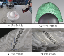 为实现天线罩用三维立体织物的近净成形,以头锥体立体特征为依据,角联锁结构为织物基础组织,提出了基于椭圆形纱线截面假设的变厚度层数计算模型和变截面经纱加列模型,并由此建立了织物纤维体积分数的预测模型,完成了头锥体结构织物顶部到薄壁均匀过渡的工艺设计与实验验证。研究结果表明,层数计算模型和经纱加列模型分别实现了织物厚度和织物截面的连续变化,其试织织物的三坐标扫描图与所设计头锥体三维模型相似度达97.36%,纤维体积分数与预测值误差为1.84%,验证了变厚度头锥体织物结构设计方案的可行性,并且织造过程中使用沿纬斜方向线密度梯度变化的经纬纱线有利于减小织物内层接线处的摩擦,提高预制体性能。