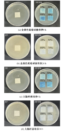 针对传统细菌检测方法操作步骤复杂、检测时间长、成本高等问题,研制了具有细菌检测功能的医疗卫生用非织造材料。首先制备了普鲁士蓝纳米颗粒(PB NPs),然后利用声化学涂层技术对聚丙烯(PP)纺黏非织造材料进行涂层整理,制得可检测细菌的功能非织造材料,并对其形貌结构、化学成分和细菌检测性能进行分析研究。结果表明:PB NPs形貌呈现明显的立方体结构;声化学涂层后的非织造材料(PP/PB)在与金黄色葡萄球菌和大肠杆菌培养24 h后,可观察到明显的颜色变化,表明其具有优异的细菌检测功能。