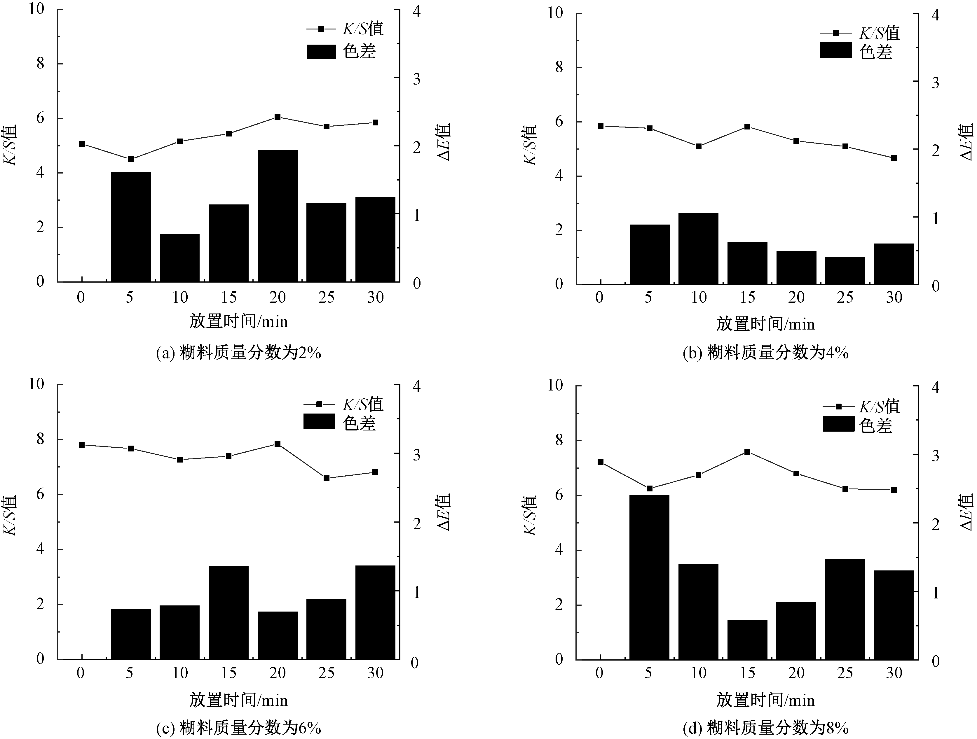 摘要: 针对泡沫印花中泡沫破裂较多会影响印花图案质量的问题,为减弱泡沫破裂造成的影响,制备了不同质量分数的泡沫色浆,借助于显微镜观察了不同条件下制备泡沫的特点,以及泡沫随放置时间的破裂情况,并测试分析了不同放置时间下印花织物的表观色深(K/S值)和色牢度。结果表明:不同质量分数的糊料在搅拌速度为1 500 r/min下搅拌20 min后,泡沫色浆均能够达到最大体积;当糊料质量分数较高时,制备的泡沫色浆均匀度差,泡沫直径分布范围大;当糊料质量分数为4%时,泡沫尺寸分布相对均匀,印花时色浆流动性好,印花后织物轮廓清晰,网板残留少;泡沫色浆在放置不超过20 min时,泡沫破裂程度较小,印花织物的K/S值稳定,色差小;泡沫印花织物的耐水洗色牢度、耐摩擦色牢度、耐汗渍色牢度和耐皂洗色牢度均达到4级以上,满足服用要求。