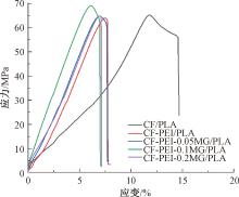 摘要: 为提高聚乳酸(PLA)的力学性能,以碳纤维(CF)为增强体,研究了CF、聚乙烯亚胺(PEI)和MXene-氧化石墨烯(MXene-GO)改性CF对PLA力学性能的影响。首先,通过PEI在CF表面引入活性胺基基团,得到PEI-CF;其次,通过MXene-GO改性CF-PEI;最后,通过双螺杆挤出机和注射成型方法制备了不同CF/PLA复合材料,探究了PEI和不同MXene-GO质量分数改性CF对CF/PLA复合材料力学性能的影响。结果表明:PEI和MXene-GO改性后CF/PLA复合材料的弹性模量得到了改善;由于纤维的长度小于临界增强长度,PEI和MXene-GO改性对CF/PLA复合材料的拉伸强度影响较小;此外,随着MXene-GO的添加及其质量分数的增加,CF-PEI/PLA复合材料拉伸断裂面越来越不平整,PEI-MXene-GO改性后的CF/PLA复合材料断裂面出现断裂碎片。