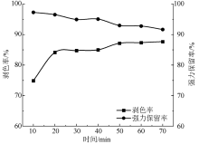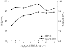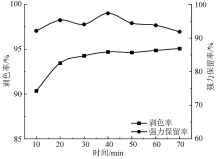 为解决传统剥色工艺复杂、剥色时间长、剥色过程能耗大等问题,设计并采用二氧化硫脲与过硫酸钠联合组成的还原-氧化剥色体系对活性蓝KN-R染色棉织物进行剥色,分析了剥色液中剥色剂质量浓度、碱剂质量浓度、剥色时间以及温度对剥色效果和棉织物强力的影响,探究了剥色剂对染色棉织物进行剥色的剥色机制。得到的二氧化硫脲体系最佳剥色工艺条件为:二氧化硫脲质量浓度2 g/L,氢氧化钠质量浓度6 g/L,剥色时间20 min,剥色温度60 ℃。过硫酸钠体系最佳剥色工艺条件为:过硫酸钠质量浓度6 g/L,氢氧化钠浓度质量4 g/L,剥色时间20 min,剥色温度60 ℃。在最佳剥色工艺条件下对活性蓝KN-R染色棉织物剥色率达到96.05%,强力保留率也维持在90%以上。相比于传统剥色工艺,二氧化硫脲-过硫酸钠剥色体系对染色棉织物进行剥色的剥色率较高,织物强力损伤较小,所需剥色剂用量少,剥色时间短,剥色温度低,是一种高效、节能的剥色方法。