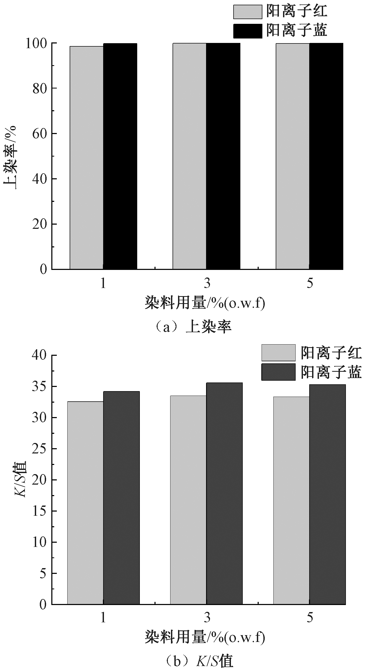 CDPTT纤维在不同染料用量下的上染率及K/S值"