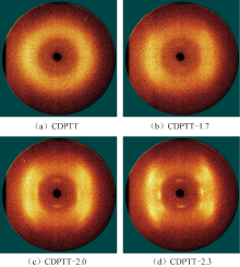 不同牵伸倍数CDPTT纤维的二维衍射图"