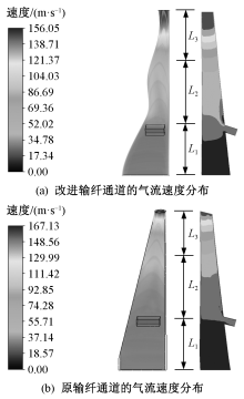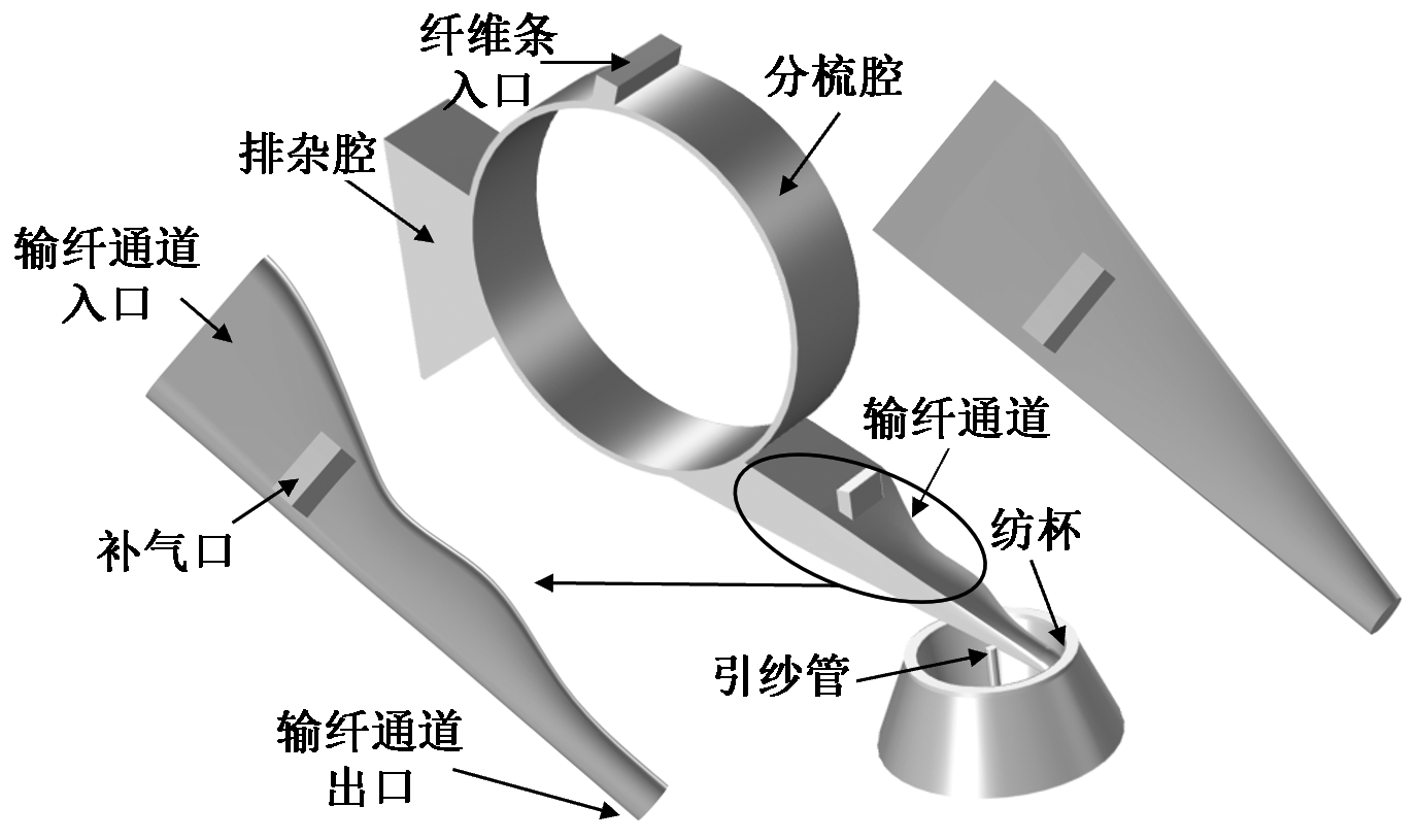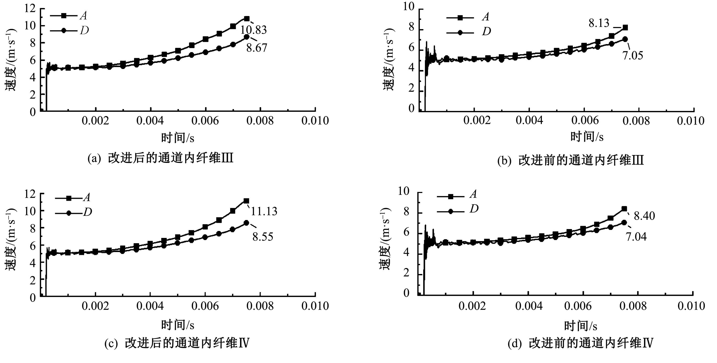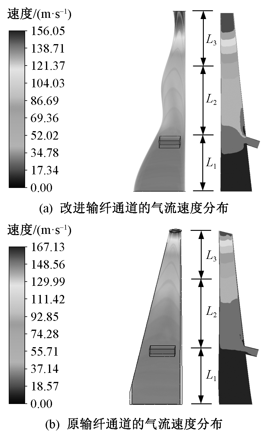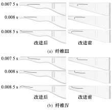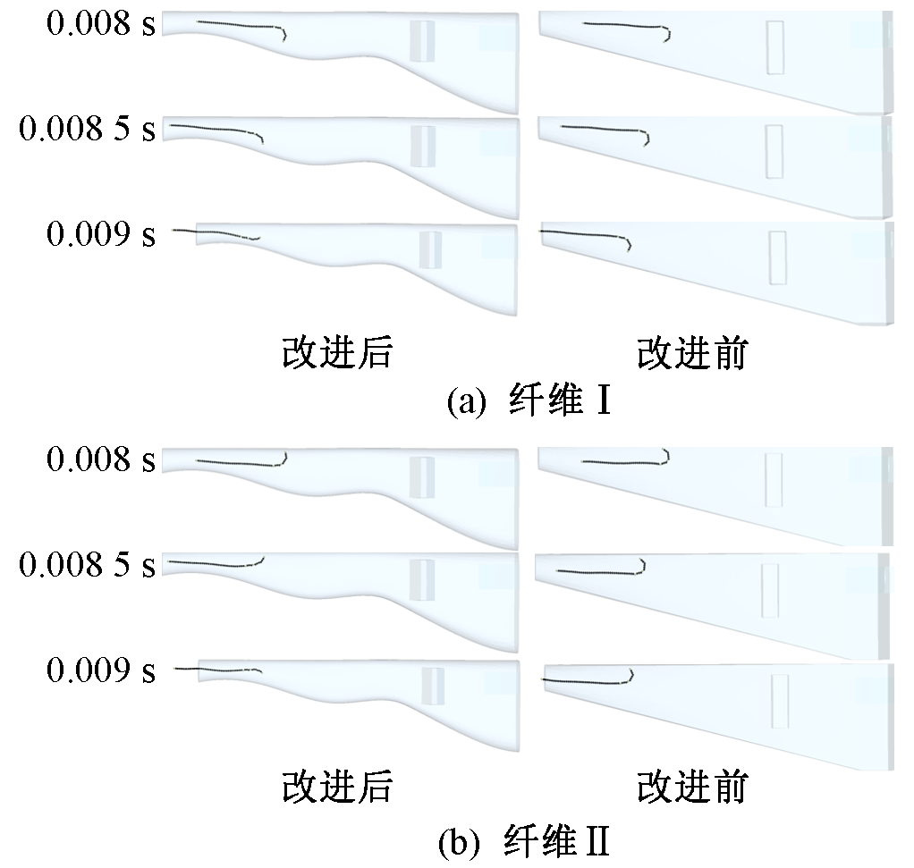 为研究输纤通道对弯钩纤维伸直效果的影响,采用流体力学数值模拟方法模拟了改进前后输纤通道内气流场的分布状态,并借助离散元软件建立了柔性纤维模型,利用两相流耦合方法求解弯钩纤维在气流场中的伸直变化过程,讨论了弯钩纤维的伸直效果。结果表明:改进输纤通道内的高速气流区域相对原输纤通道占比较大,对弯钩纤维的加速伸直效果更好;弯钩纤维在改进输纤通道中能更早到达通道出口,且伸直效果优于原输纤通道。改进输纤通道对后弯钩纤维的伸直效果提升更加明显。该研究通过数值模拟的方法分析了弯钩纤维伸直过程,为转杯纺输纤通道等关键部件的设计提供指导。