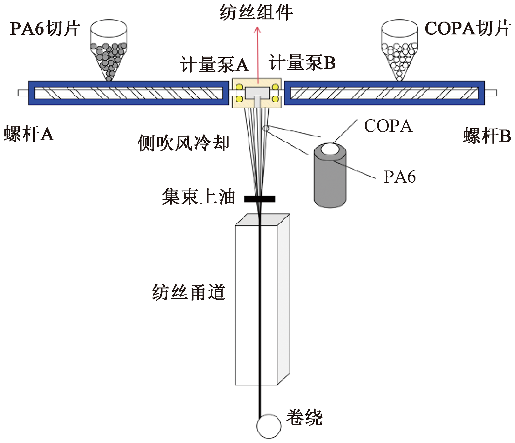 关键词: 聚酰胺6, 共聚酰胺, 偏心皮芯复合, 牵伸, 结晶, 取向, 收缩性能