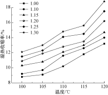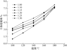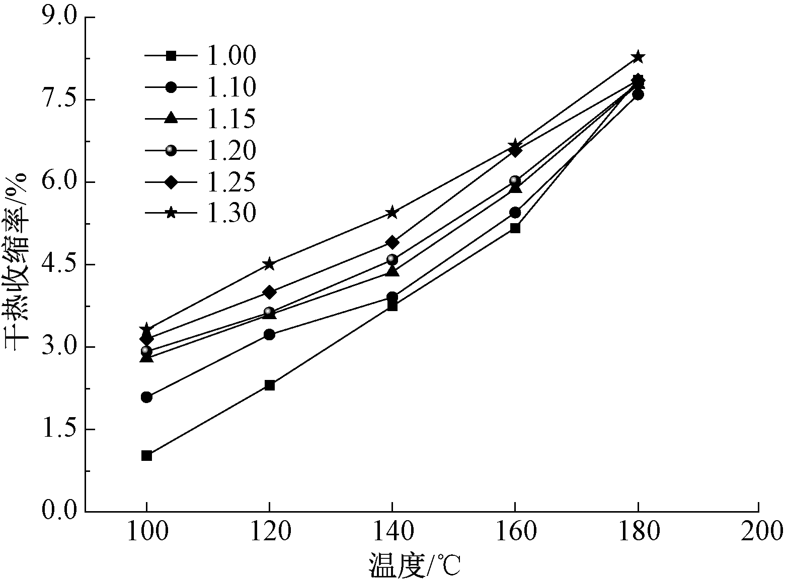 不同牵伸倍数PA6/COPA偏心皮芯复合纤维收缩率随温度变化曲线"