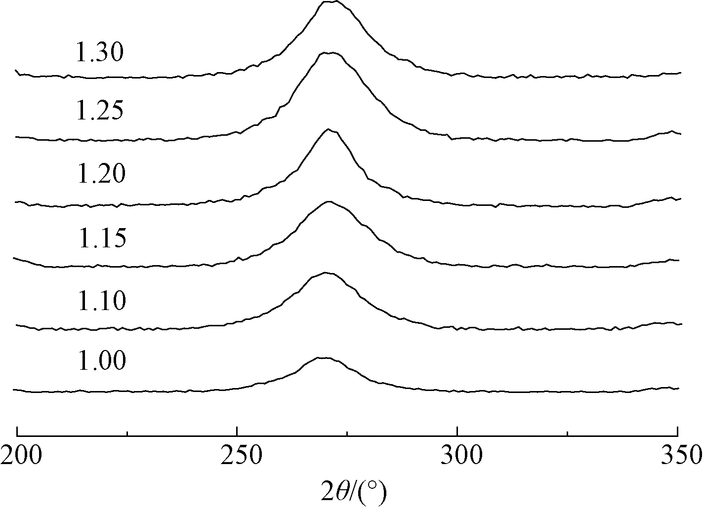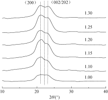 不同牵伸倍数PA6/COPA偏心皮芯复合纤维的X射线衍射曲线"