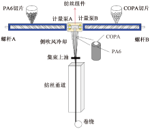 PA6/COPA偏心皮芯复合预取向丝(POY)的纺丝工艺流程简图"