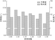 不同牵伸倍数PA6/COPA偏心皮芯复合纤维的半峰宽和取向度"