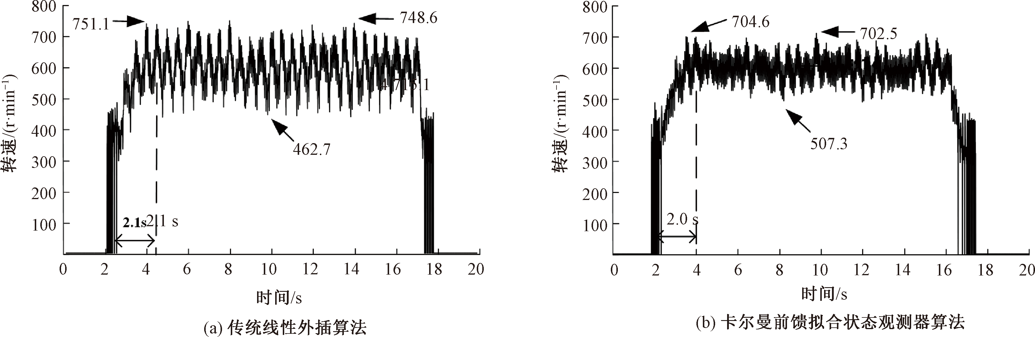 摘要: 基于开关型霍尔位置传感器的永磁同步电动机控制系统虽具有高功率密度、高效率等优势,但该类型传感器的信号跳变离散,使电动机的位置和速度估算出现较大误差,进而影响了储纬器纱线输送的运行性能。为提高电动机转子估算的精度,以增强储纬器纱线输送的稳定性,提出了基于卡尔曼前馈拟合状态观测器的电动机转子位置和速度估计方法。首先采用卡尔曼迭代算法对离散的霍尔信号进行滤波及拟合,以消除霍尔安装偏差造成的噪声扰动;其次,采用全维状态观测器对电动机的转子位置信息进行估算,最终获得连续的电动机转子位置和速度信息。为验证提出算法的有效性,搭建实验平台进行了测试。结果表明:相较于传统的线性外插算法,采用改进卡尔曼前馈拟合状态观测器算法的系统,在启动阶段,电动机转子位置及速度的估算精度更高;在整个运行过程,纱线输送的动态性能和稳态性能更好。
