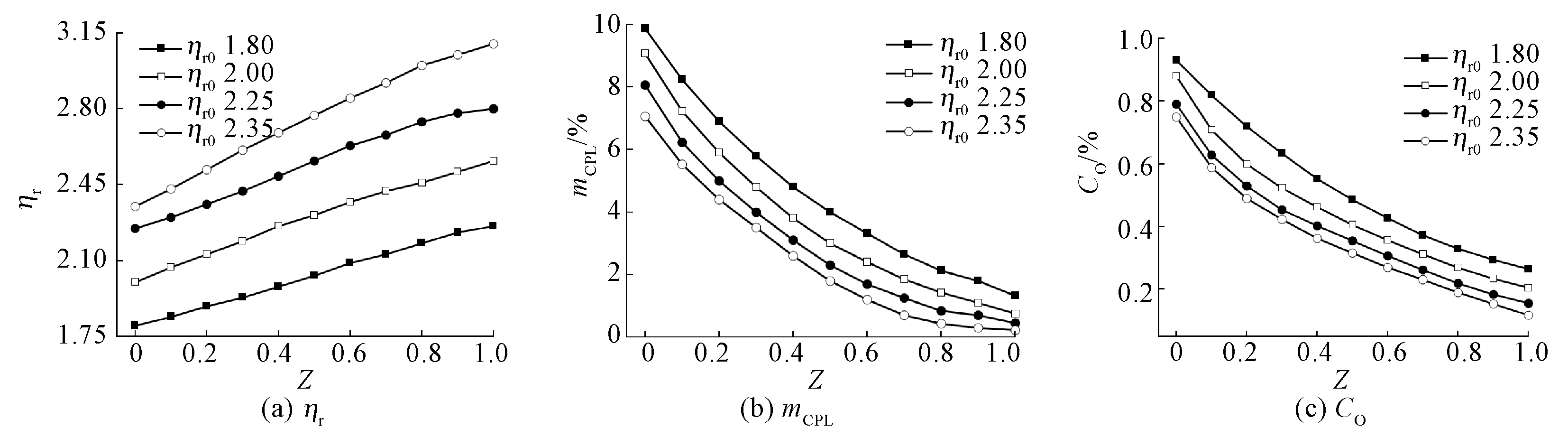 不同初始相对黏度进料下熔体指标沿反应器轴向的变化"
